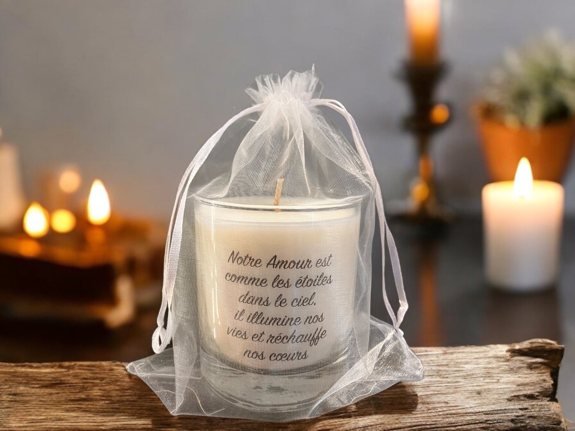 Vous pouvez également personnaliser vos bougies pour une occasion particulière comme un anniversaire, un anniversaire de mariage, une déclaration d'amour, une demande insolite, un remerciement, cadeaux d'entreprise...